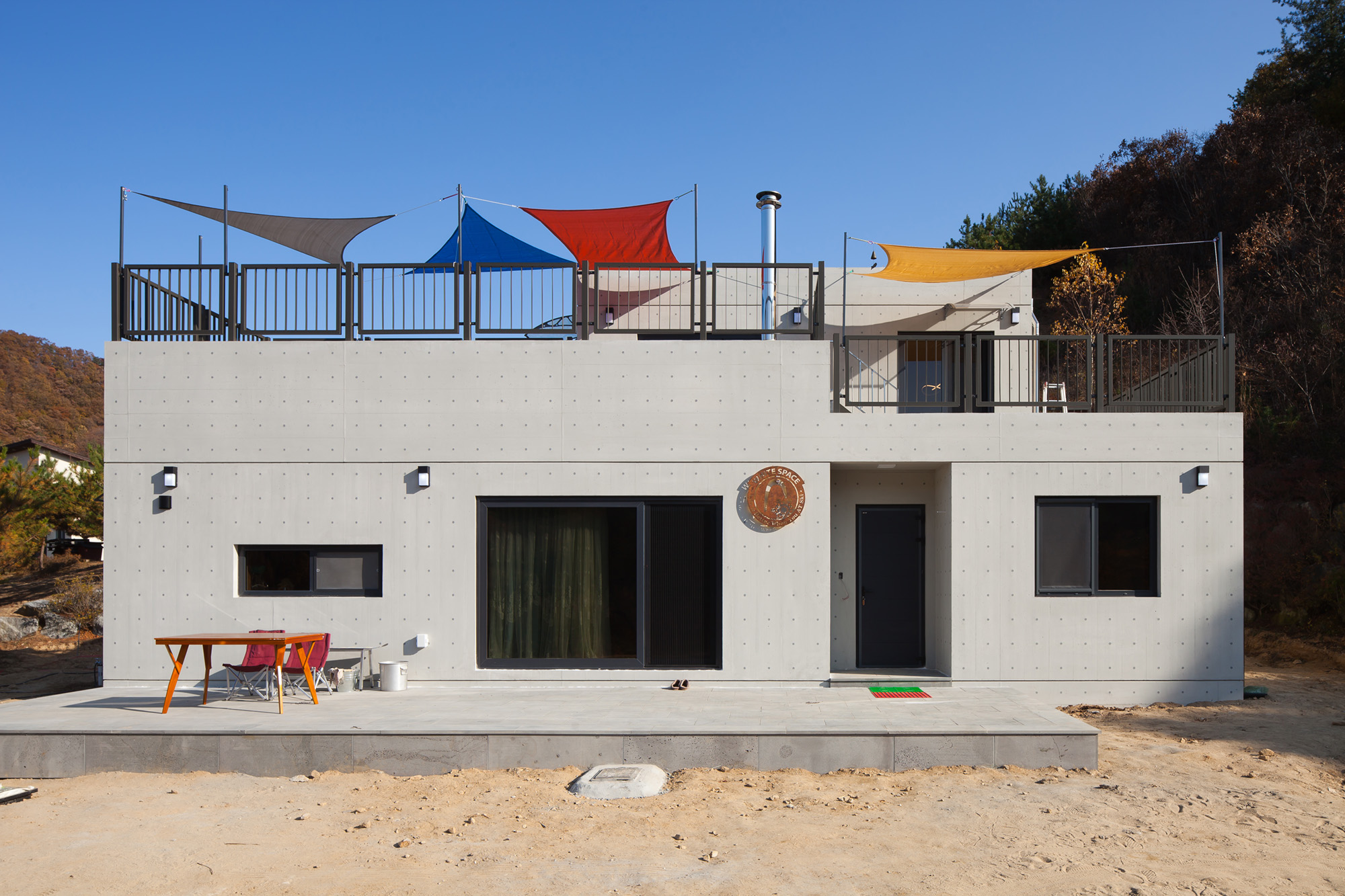 외부 마감은 노출콘크리트 면을 그래도 이용하여 깔끔하며 겨울과 잘 어울리는 주택이 완성되었습니다.