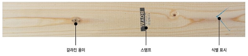 -KD(Kiln-Dry): 인공건조를 의미하며 함수율 15% 미만의 잘 건조된 목재