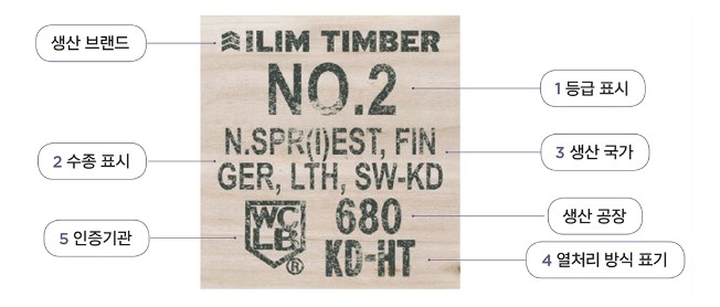 국내에 수입되는 웬만한구조목에는 KD가 표기되어 있는 경우가 많습니다.