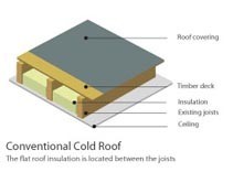 *콜드루프(Cold Roof): 서까래가단열재에 의해 보온이 되지 않는 지붕 시공 방법