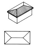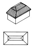 -모임 지붕(Hip Roof): 우리나라지붕 중 우진각 지붕과 같은 형태로 사면에서