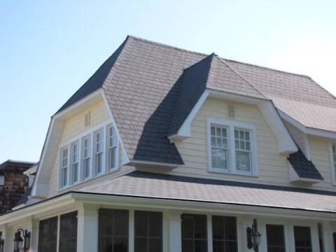 -합각 지붕(Dutch GableRoof): 박공 지붕의 박공면에 외쪽 지붕을 붙인