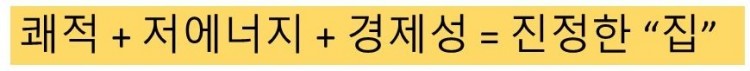 엄청난 에너지비용을 지불하면서 쾌적한 것은 안 된다는 의미이고, 에너지도 적게 쓰고, 쾌적한 집이지만 이를 구현하기 위해 비용을 크게 들이는 것도 안 된다는 것이다.