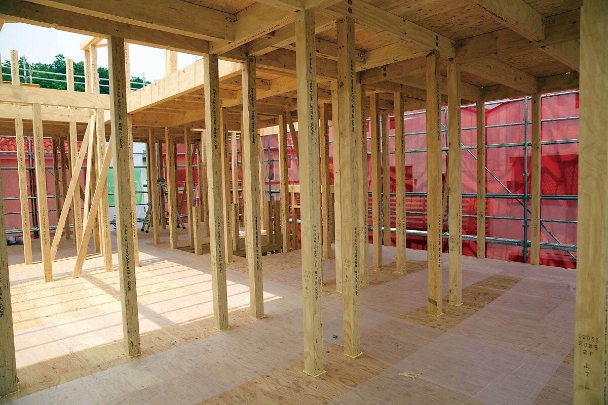 중목구조, 공장에서 프리 컷 방식으로 가공한 LVL 구조부재와 기둥-보 접합