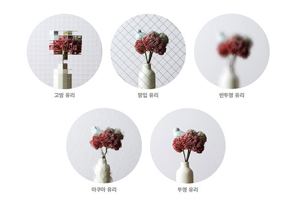 수 있습니다. 일반 투명유리와 강화유리, 그리고 두 장의 유리 사이에 그림이나 문양을