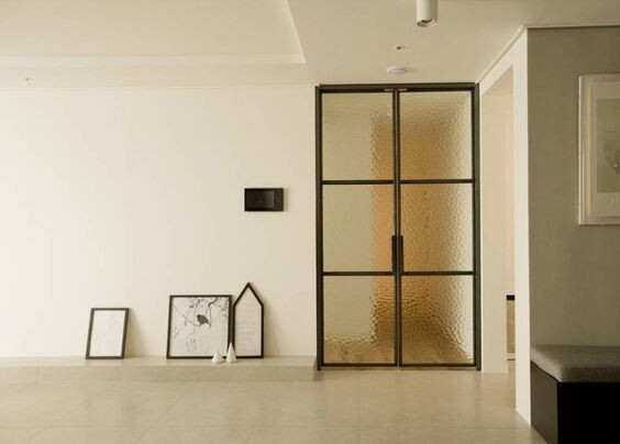 중문에 설치되는 유리를 일반 투명 유리가 아닌 고방유리 혹은 반투명 유리를