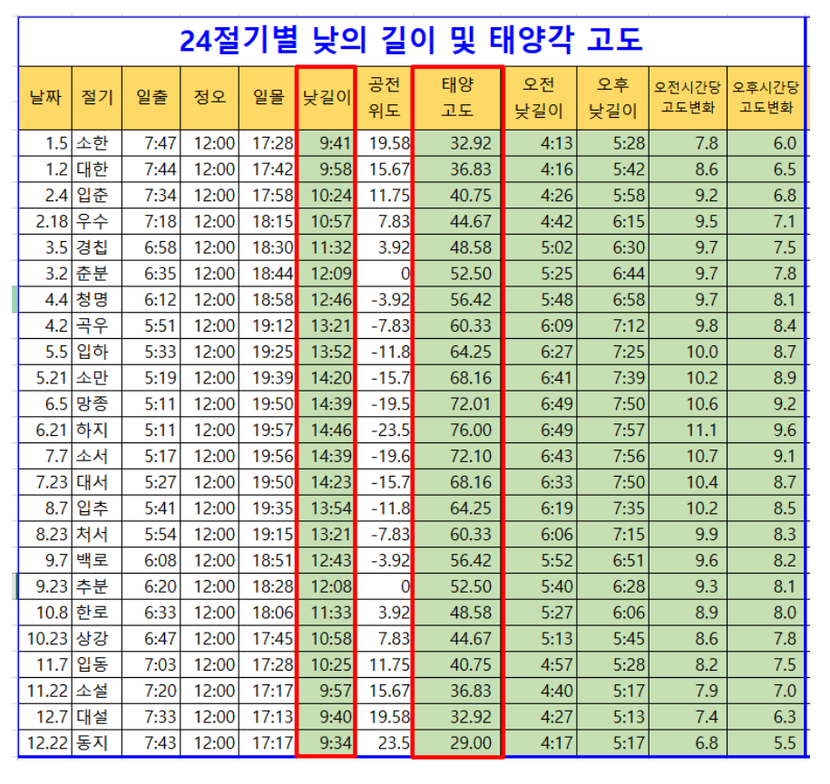 참고 : 남중고도 (태양이 가장 높은 위치에 있을 때의 각도)