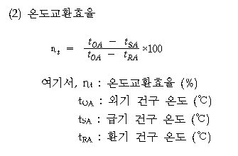 KS B 6879 에 의한 온도교환효율의 계산 방법은 아래와 같다.