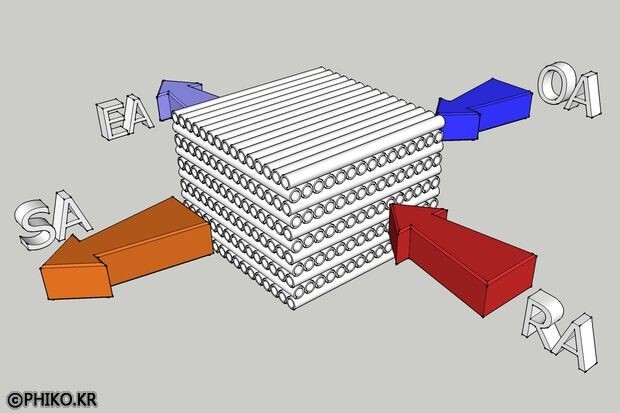 물론 RA의 거의 10% 가까이가 다시 SA로 투입되므로, 환기량 역시 약 10% 정도 더 고려해야 하며, 디퓨저 위치를 고려할 때 실내의 조리 냄새 등이 다시 들어오지 않도록 고려하는 것도 필요하다.