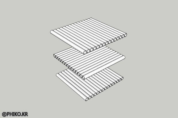 열교환 원리는 빨대를 아래 그림과 같이 다른 방향으로 수백개를 겹쳐 놓고, 나가는 공기와 들어오는 공기가 그 사이를 통과하도록 하여, 공기가 서로 섞이지 않으면서 서로의 열을 교환하도록 되어있다.