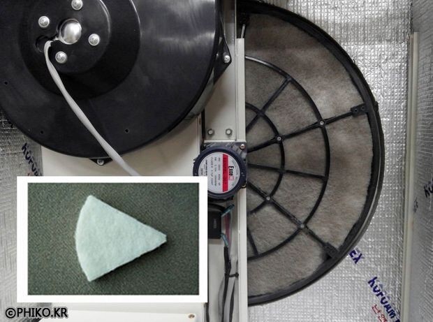 그리고, 환기되는 공기가 두툼한 환형열교환기를 통과하므로 판형에 비해 기기의 소음이 큰 것도 단점이다.