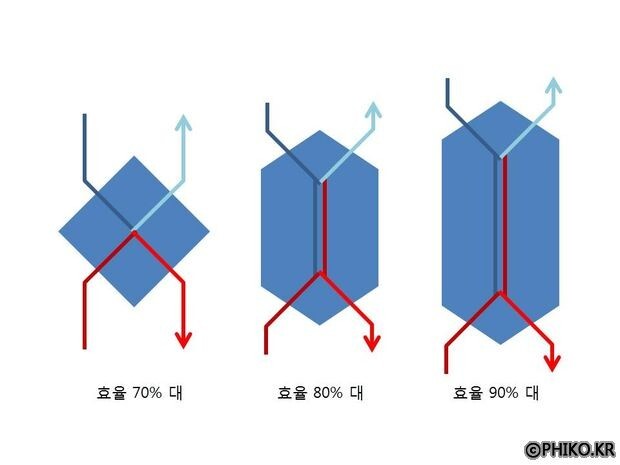 아래는 이 열교환소자의 형태별 효율을 대략적으로 그린 것이다.
