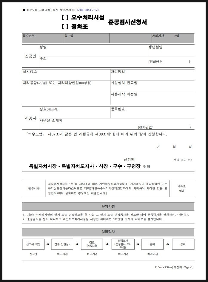 정화조 시설 준공검서 신청