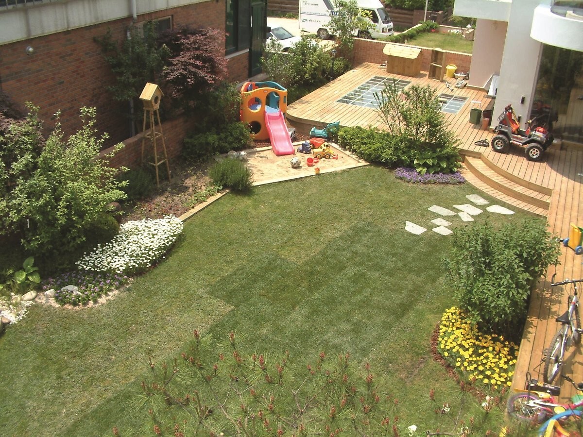 간단한 놀이기구나 장난감 등을 정원에 배치한다면 훌륭한 놀이 정원의 역할도 겸하게 된다.