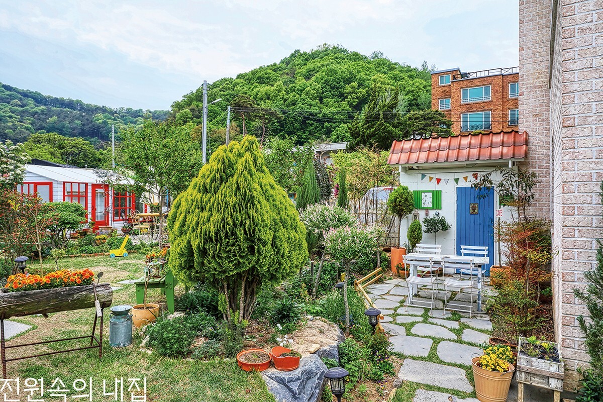 "리폼과 목공을 하며 6년 전, 작업실이 있는 집을 지었어요. 한창 온라인 쇼핑몰을 열고 빈티지숍도 운영하다가 남편과 같이 점차 가드닝에 빠져 지냈죠. 노르웨이나 스웨덴처럼 북유럽의 가정식 정원을 찾아보며 그 모습을 꿈꾸다 보니, 어느덧 여기까지 왔네요."
